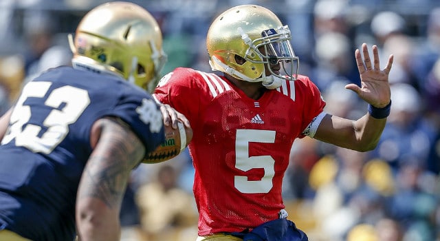 Notre Dame starting quarterback Everett Golson stood in the pocket, ball in hand, and examined his options. After consideration short in time but long in mind, Golson began his throwing motion, planted his foot and completed his pass to the open arms of a defender. It would be one of the few completions Golson would make on the day.