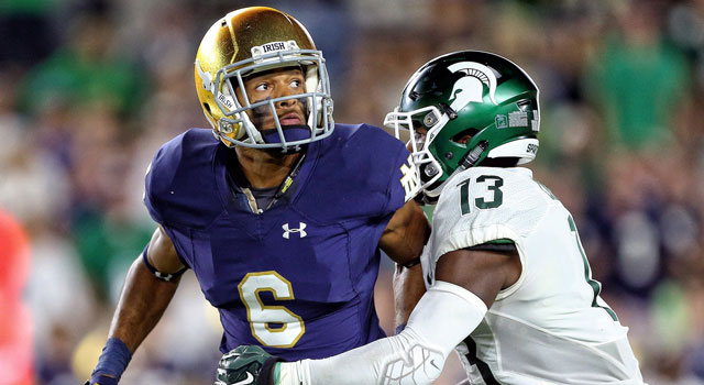 4. Jerry Tillery – Might sound crazy to have a defensive linemen on the list after Michigan State ran for 260 yards, but Tillery was one of the few defenders who came to play from the get go on Saturday night. Tillery played perhaps his best game in his young career and displayed strength we haven’t seen out of him previously. Tillery picked up two tackles for loss and showed the kind of player that he can be for Notre Dame moving forward. Now that he played at that level against a quality opponent the next step in his development will be to play like that week in and week out.