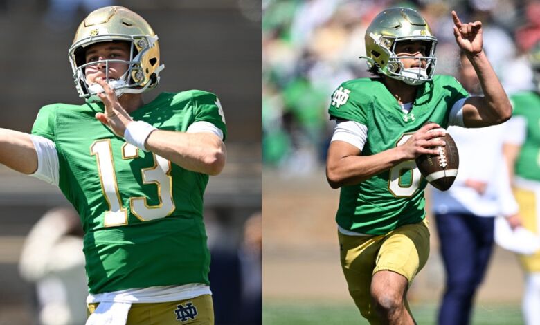 The decision from Freeman, offensive coordinator Mike Denbrock, and quarterbacks coach Gino Guidugli could ultimately come down to what kind of style they want to play more. Notre Dame ran a lot of QB power with Riley Leonard last year while the offensive line solidified itself and Leonard got more familiar with his receivers. It seemed clear early on that they wanted to throw it more, but they realized they couldn’t because Leonard was struggling with accuracy early, before ultimately getting comfortable and taking Notre Dame on the run they had.