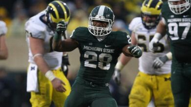 Michigan offensive tackle and projected first-round NFL draft choice Taylor Lewan stood on the sidelines in Spartan Stadium and watched…