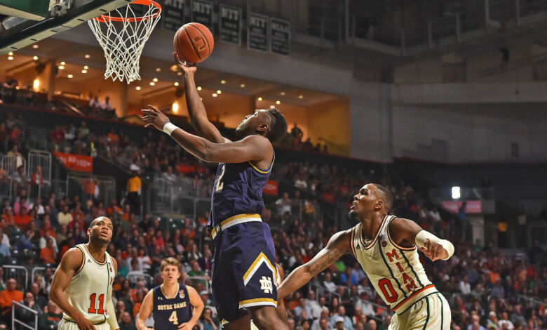 The Hurricanes split a pair of free throws, but a Steve Vasturia layup with 11 seconds left gave the Irish a three-point cushion and Beacham’s steal iced the 67-62 victory.