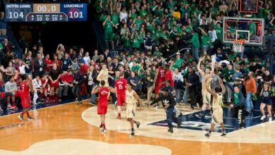 Things looked pretty bleak for Notre Dame on Saturday night with less than a minute left in regulation at Purcell Pavilion in their showdown with #11 Louisville. With ESPN College…