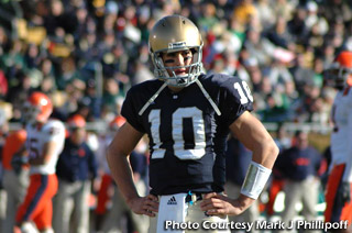 Syracuse blanked the Irish in the opening quarter and actually lead this game 3-0 before Brady Quinn connected with Maurice Stovall for a 25 yard highlight reel touchdown. Stovall caught his 3rd jump ball touchdown in as many weeks and finished the game with 90 yards while pushing his touchdown total to 10 on the season.