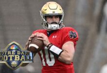 UND.com posted the full video of the “Irish Eyes” Drill (the drill in which a defender lines up in front of a blocker and needs to shed the block and tackle a running back). Here are my observations on the drill with my full notes of each play I could make out on the video after the jump.