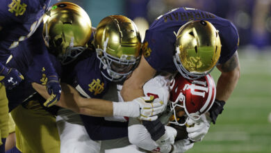 - Pressure, or lack there of. For all of the blitzing 75% of the time talk, we didn’t see a whole lot of it Saturday. When we blitzed we were effective at times, but through three games the Irish defense has recorded just 1 sack – that’s not going to get it done.