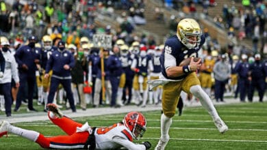 Notre Dame’s most famous NFL product is also one of the biggest draft steals in NFL history. In fact, before a guy named Tom Brady emerged from the 6th round of the 2000 draft to win 3 Super Bowls for the Patriots, Joe Montana was widely considered THE biggest draft steal of all time. After leading Notre Dame to a national title in 1977 after starting the season 3rd on the depth chart and then finishing his career with the famous Chicken Soup Game in the Cotton Bowl win over Houston, Montana was just a third round pick by the San Francisco 49ers.