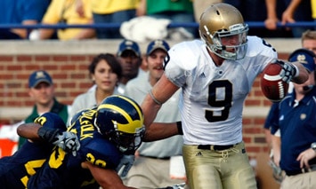 Still, what’s done is done, and the saddest of Irish fans is the one who holds fast to gridiron ghosts and dusty trophies. Harboring resentment for something that happened in 1910 or even 1943 is like my crotchety old Irish grandfather still hating the British. The Michigan boycott inevitably ended, their series with Notre Dame resumed in 1978 and, aside from a couple years off here and there, has continued uninterrupted. Yes, I realize jackasses like Bo “to hell with Notre Dame” Schembechler—whose resume still lists zero national championships, in case anyone’s counting—have done their best to continue the Michigan coaching fraternity tradition of crapping on Notre Dame. But beyond the soap opera, the games themselves have been nothing short of magnificent. For better or worse, I personally was in attendance for Harry O’s Field Goal in ’80, Reggie Ho’s Heroics in ’88, Rocket’s Returns in ’89, The Catch in ’91, the Tie in ’92, and in 1993, during the brief time I was actually a resident in Ann Arbor, I got to watch from halfway up on the 30-yardline an arrogant Big House eat a delicious plate of blue-and-gold crow.