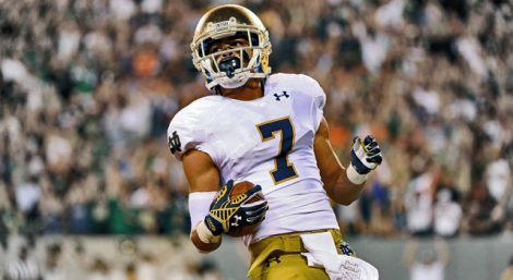 Two seniors, Davaris Daniels and Amir Carlisle, out for the game. One receiver playing in his first game, Torii Hunter Jr. TWo relatively inexperienced sophomores, William Fuller and Corey Robinson, and a converted safety, C.J. Prosise as part of the lead pack. So what?? This Irish receiving corps, which will at least add Carlisle back for Stanford, is growing before our eyes. Elite speed in Fuller and Chris Brown, near-elite speed in C.J.Prosise, they all can catch, they all can run and they all can block. Hunter’s size was shocking. He’s got his poppa’s guns and he does not play in a shy way.