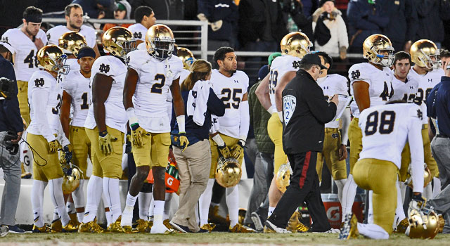 We have a coach that over thinks the little things. Clemson 2 pt conversion at 21-9 but then had to take a timeout to get the play off. Take the 45 yard penalty and kick it, that TO was way too valuable when down 2 scores. Left us down 21-9 at that point. Would have giving ND the chance to kick the extra point to go to OT. Yes I was there in the rain!! Now Stanford, once again went for 2 way too early and could have done it on the last TD to go up 3. Since I was at the game I watched the replay of the game last night and why did Kelly take a time out at 30seconds? Go to the line take a few seconds off the clock or force Stanford to take a TO at that time. Even if we don’t get it in on 1st down we would still of had 2 TO’s with 20 -25 seconds left. Just the little things and the over thinking of BK cost this team 2 wins. Don’t get me started on the Red Zone playing calling with 2 corners out at Stanford.