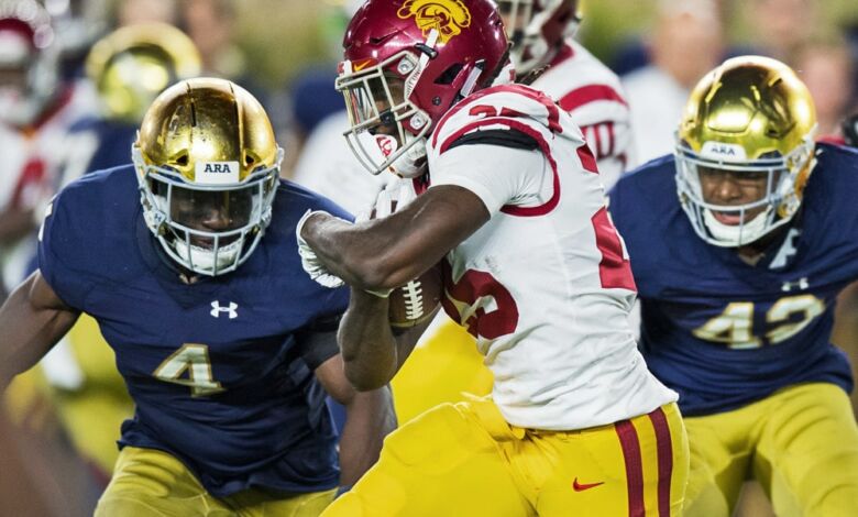 Notre Dame Offense vs. USC Defense: Last weekend against UCLA, the USC Trojans gave up 289 yards on the ground to Joshua Kelley. Kelley is averaging 5.7 yards per carry on the season. What do you think will happen when Dexter Williams, 6.8 yards per carry faces this defense?
