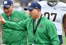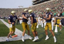 It would appear that year of work in Coach Balis’s weight room has paid dividends for Bauman. Listed as a 6’4” and 226-pound recruit by Rivals, Bauman came into fall camp tipping the scales at 242 pounds. At practice this past Thursday, Bauman used that big frame to get open to catch multiple passes including two touchdowns. By all accounts, Bauman was impressive. The performance was sufficient to generate Kevin Bauman questions for Brian Kelly at the press conference that followed. “He’s refining himself in this position,” Kelly would remark. “He’s getting on the edge of linebackers and safeties and putting himself in positions where now he can use his ability. He’s got really good ability.”