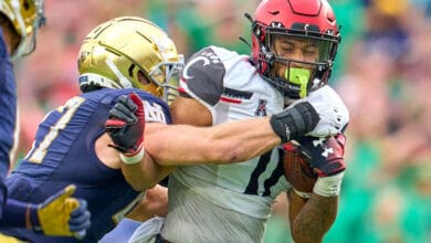 Middle linebacker Drew White had only good things to say about Kollie during fall camp. “Prince Kollie has done amazing here in his short time. I thought he had an amazing summer,” remarked the Irish captain. “I can’t wait to see him continue to build on both his physical capabilities. He’s only going to get bigger and stronger, which is crazy because he’s already huge. And then that mental aspect as well.”