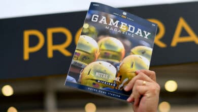 Today’s game is a rare noon kickoff and a rare appearance on Fox for the Irish. Fox reserved its premiere time slot – “Big Noon Kickoff” – for Notre Dame and Wisconsin. The always entertaining Gus Johnson is on the play-by-play with Joel Klatt providing color commentary.