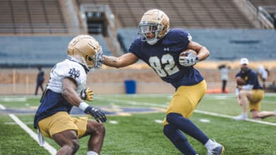 Notre Dame has more than enough depth at running back right now for Tyree to be utilized in this capacity as well. Logan Diggs and Audric Estime give Notre Dame a tremendous two-headed monster while sophomore Jadarian Price – who some felt was the best running back on the roster last spring – returns from injury. Add in sophomore Gi’Bran Price, and incoming freshman Jeremiyah Love and Notre Dame has more than enough options to not need Tyree as a primary running back either.