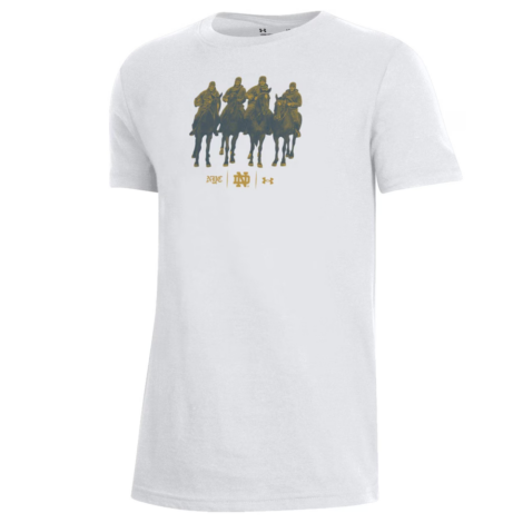 7. Notre Dame Fighting Irish Under Armour Youth 2024 Shamrock Series Horses T-Shirt – White