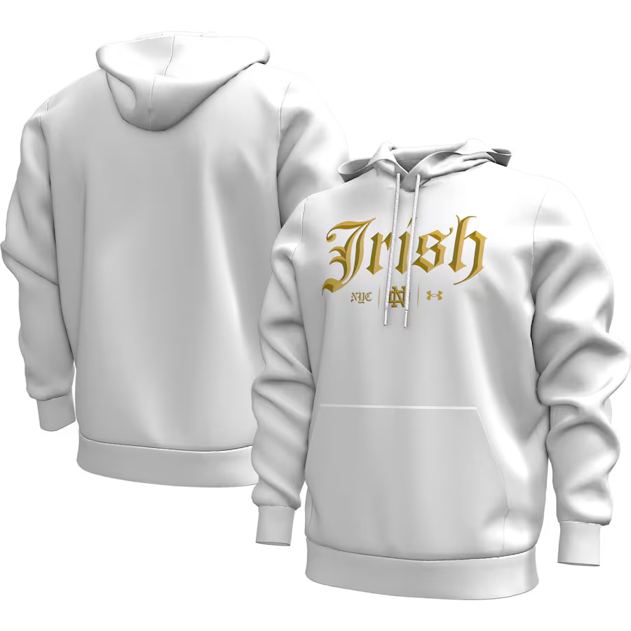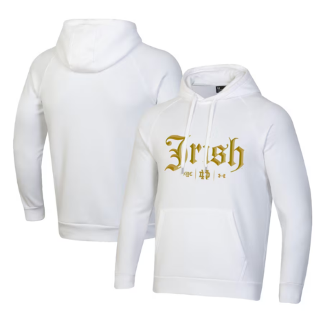 4. Notre Dame Fighting Irish Under Armour 2024 Shamrock Series Essential Pullover Hoodie – White