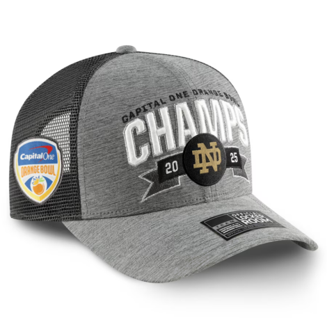 2. Notre Dame Fighting Irish Nike College Football Playoff 2025 Orange Bowl Champions Locker Room Structured Trucker Adjustable Hat – Heather Gray/Anthracite