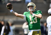 Kenny Minchey committed to Notre Dame on November 22, 2022. Minchey was a 4-star recruit and the number 169 player nationally and number 14 in the nation at QB per 247sports. He was also the second-best player in Tennessee per 247Sports. Minchey is a redshirt sophomore and will have his first shot at the starting role this season, just like Carr. He appeared in three games during his freshman season, completing two passes on two attempts for twelve yards. In his sophomore season, Minchey appeared in one game where he made a pair of rushes that combined for twelve yards. Minchey also scored his first career touchdown during this game on a seven-yard rush. Minchey is the best on the run out of the three competing for the starting job.