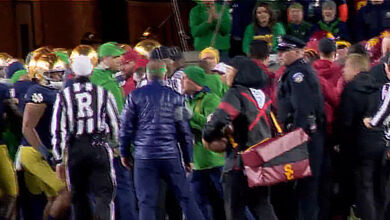 Tempers flared at the end of the first half of yesterday’s Notre Dame win over USC. The two sides were involved in a scuffle on the field that had the…