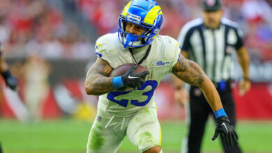 Standing just 47 yards away from reaching the 1,000-yard threshold, former Notre Dame running back Kyren Williams’ NFL career with the Los Angeles Rams has taken off in just his…