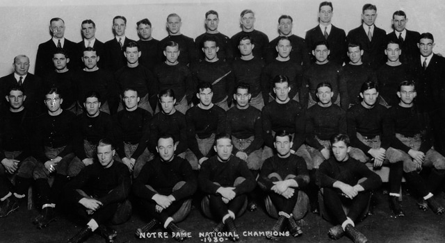 The Irish had won it all in ’29, and unlike ’24, there were many key veterans returning for the 1930 campaign. All-Americas Carideo and Schwartz were returning, joined in the backfield by Jumpin’ Joe Savoldi, with Marty Brill rounding out the best backfield quartet since the Four Horsemen.