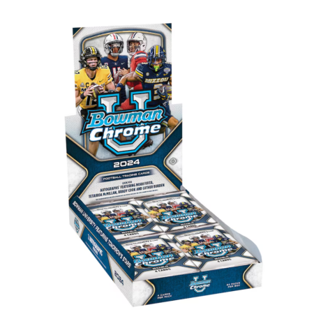 Get the 2024 Bowman University Chrome Football Factory Sealed Hobby Box here.