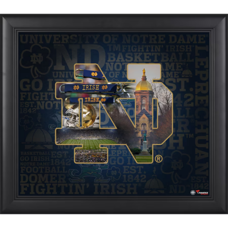 Celebrate decades of Fighting Irish football history with a beautifully framed collage. It captures the evolution of the team’s storied past.