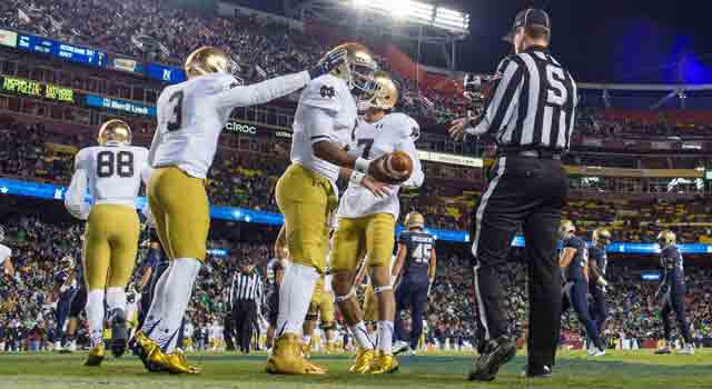 Notre Dame weathered yet another storm from Navy last night but survived with a 49-39 victory over the Midshipmen to improve to 7-1 on the season and keep their playoff hopes alive. Here’s the highlights from Notre Dame’s closer than expected win at FedEx Field.